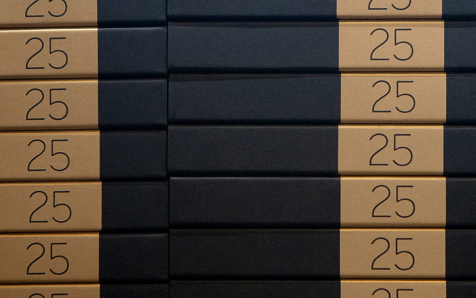 Écrins de chocolat pour la marque C.chocolat, artisan chocolatier, Brest-Quimper. Différentes tailles de coffrets avec glissière réalisés avec une dorure à chaud. Simplicité du graphisme et qualité des textures de papier.